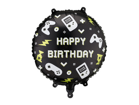 Balon foliowy czarny Happy Birthday Gamer Dla Gracza 35cm